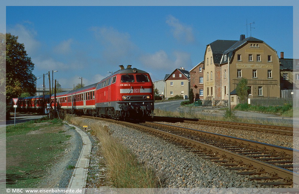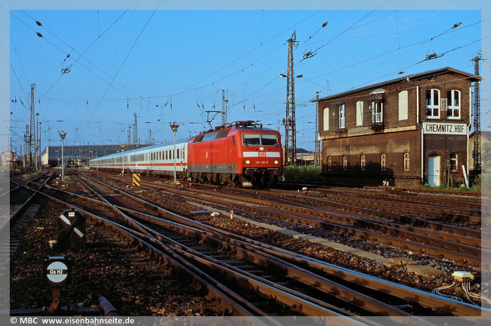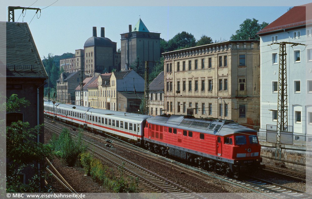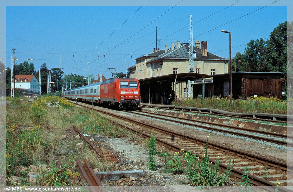 über Gößnitz umgeleitet. IC 2151 aus Richtung Nürnberg erreicht am 04.09. den Bahnhof Gößnitz. Da die Züge damals ohne Steuerwagen verkehrten, wurde der Traktionswechsel von Reichenbach nach Gößnitz verlegt.