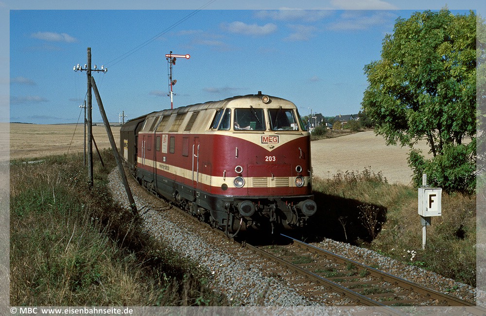Am 17.10. hatten Lok 203 und 202 der MEG gemeinsam hinter Unterlemnitz gen Lobenstein wenig Mühe, war der Scheitelpunkt doch bereits überwunden.