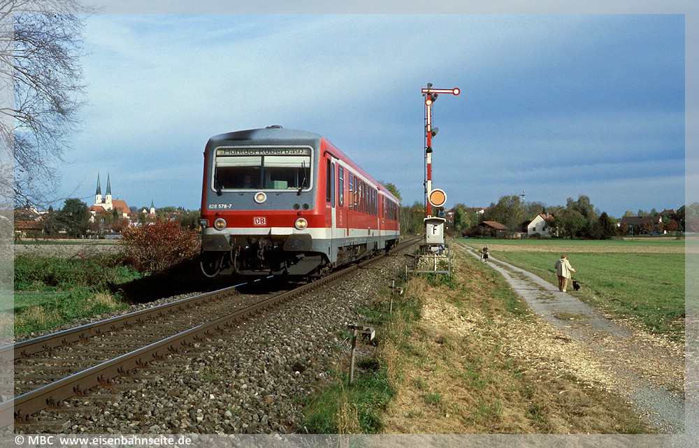 Zum Einsatz kam der VT 614 005/006, der die Bundesbahn-Poplackierung der 1970er-Jahre trägt. Schmuddeligen Wetters zum Trotz reiste ich per Bahn an,