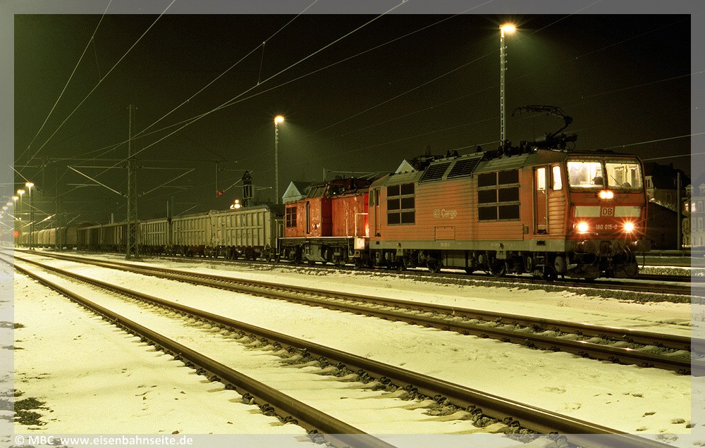 180 bespannt. Am 02.12. unternahm ich einen Versuch das zu dokumentieren. 180 015 war an diesem Tag eingeteilt, 298 110 wird mitgeführt.