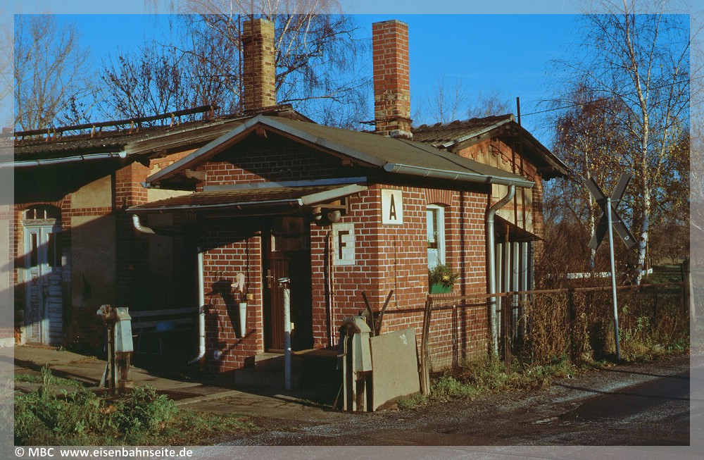 Das links abgebildete Stellwerk W2 ist am 17.01.2004 außer Betrieb gegangen und kurz nach der Aufnahme abgebrochen worden.