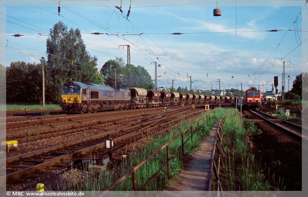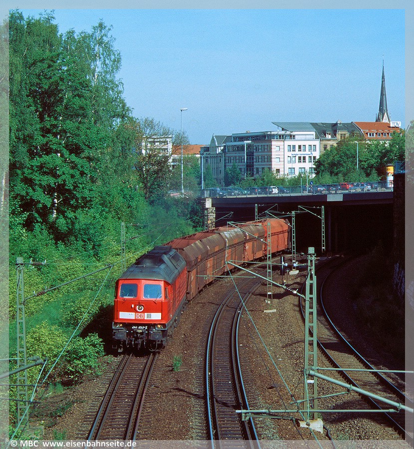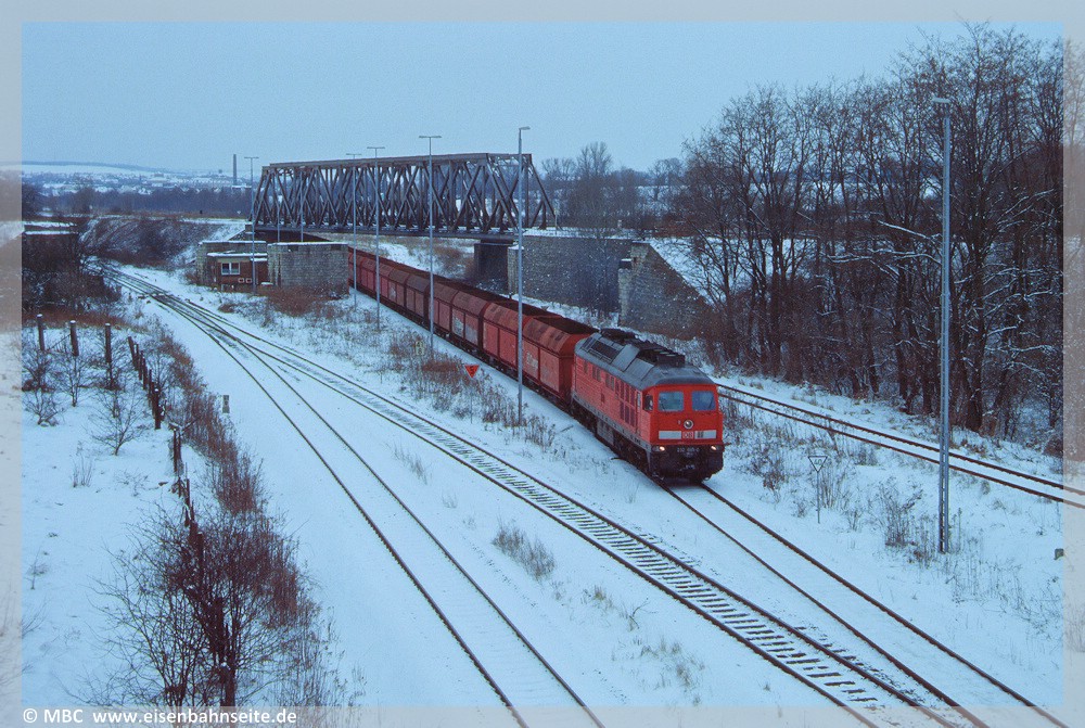 [Frankenberg (Sachs) – Bergen (b. Celle) Lagerbahnhof] übernommen. Die „Beckerbrücke“ zwischen Chemnitz Süd und Mitte war damals beliebter Fotopunkt für nachmittägliche Güter-/Sonderleistungen (31.03.).