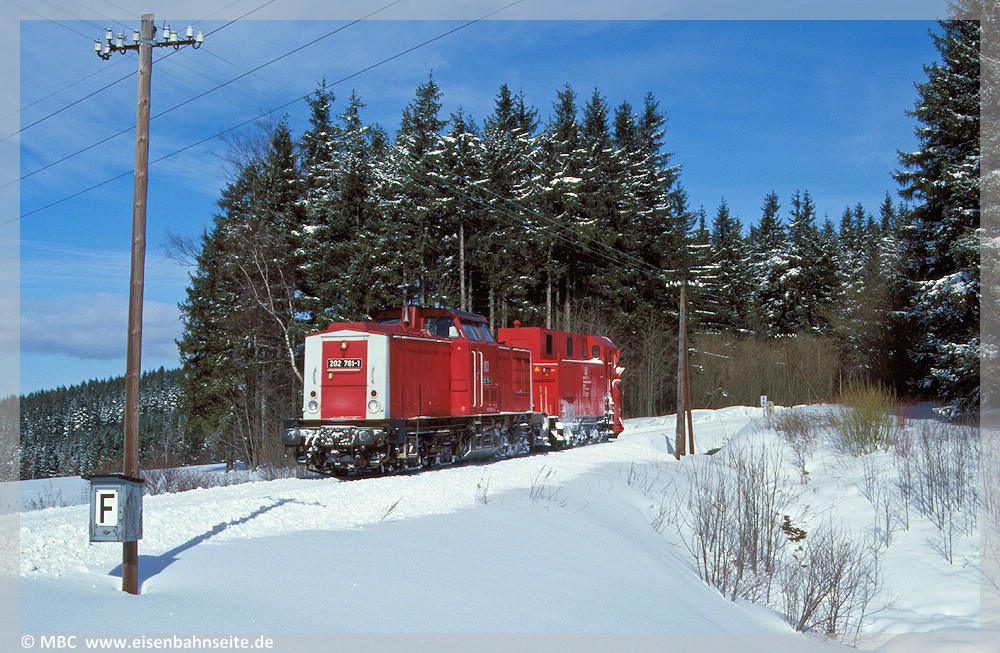 Auch im Februar 2005 gab es viel Winterwetter, Ludmillas und Altbauelloks rund um Chemnitz. Außerdem zog es viele Fotografen wieder ins Thüringer Oberland, denn zwei V180 der MEG halfen dort im Güterverkehr aus. Dies sollte rund ein Jahr halten.