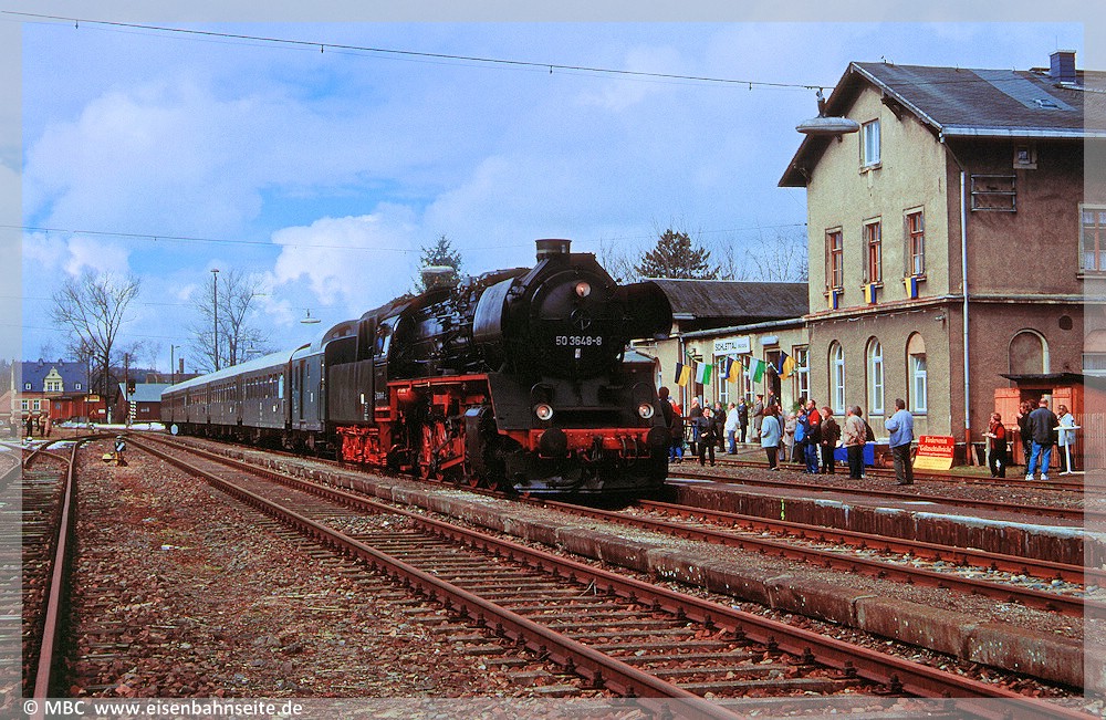 50 3648 auf der BSg seit der Streckenreaktivierung. Nachdem sie 1997/98 erstmals hier im Einsatz war, sollten nun viele Einsätze im oberen Erzgebirge folgen.