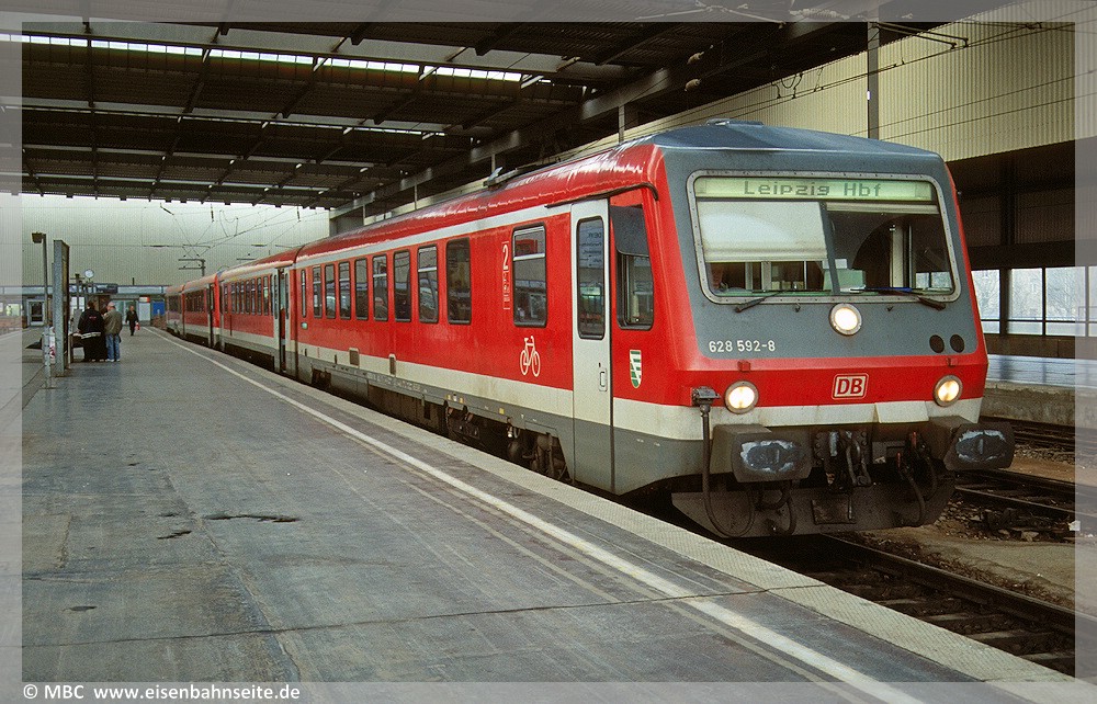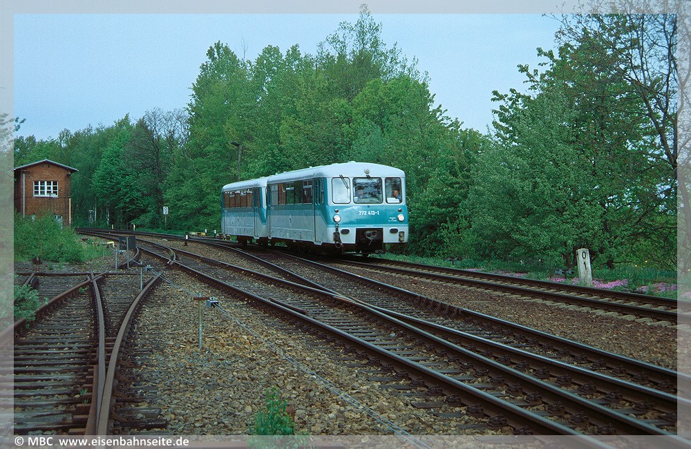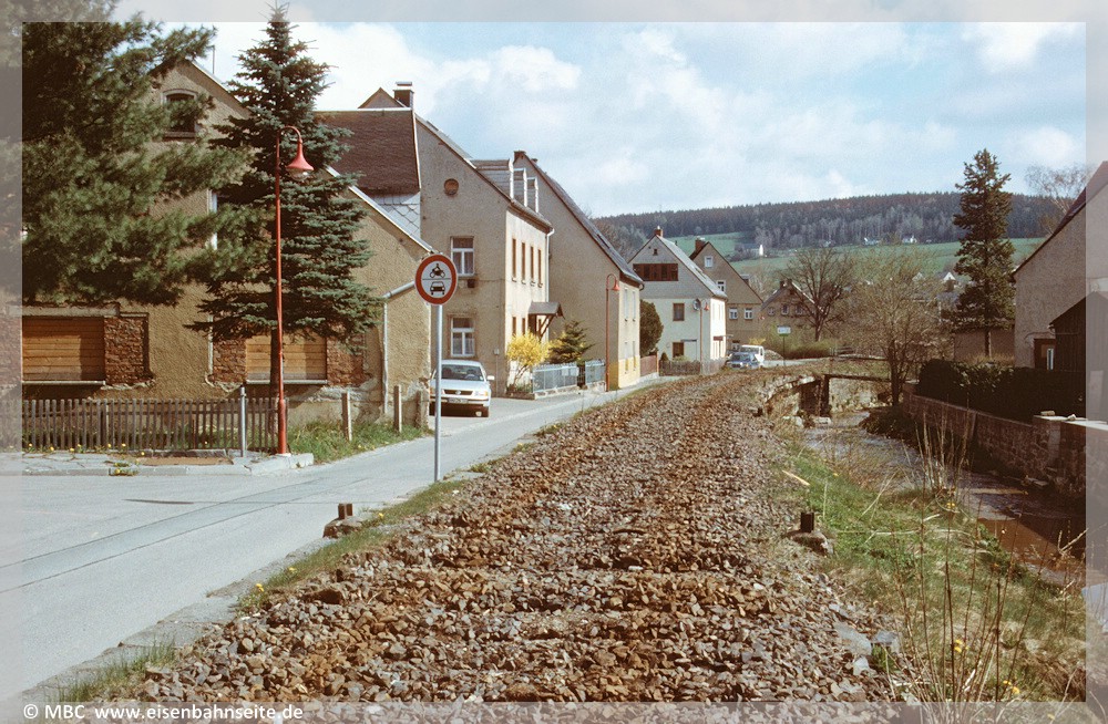 den Rückbau (scheinbar) nicht mehr benötigter Bahnhofsgleise. Außerdem wurde der Abschnitt Geithain – Narsdorf wieder zweigleisig ausgebaut. Am letzten Tag pendelt u. a. 612 992 zwischen Chemnitz und Geithain, hier in der Ortslage Wickershain, zwischen Geithain und Narsdorf.