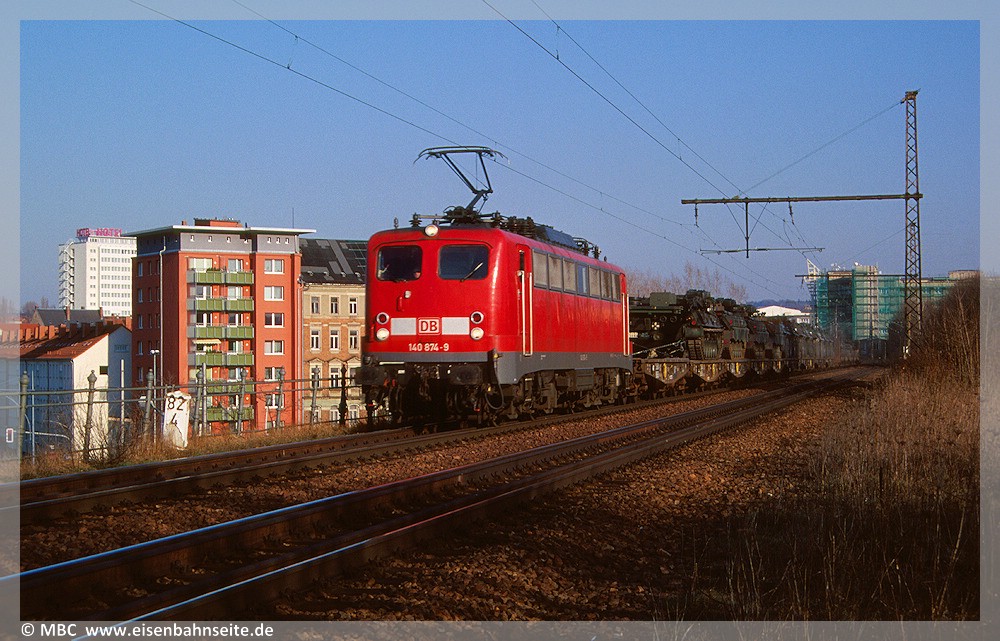 KBS 516. 232 296 und Schlusslok 298 104 brachten das Kriegsspielzeug bis Chemnitz Hbf. Dort hat 140 874 den Zug MCVS 90137