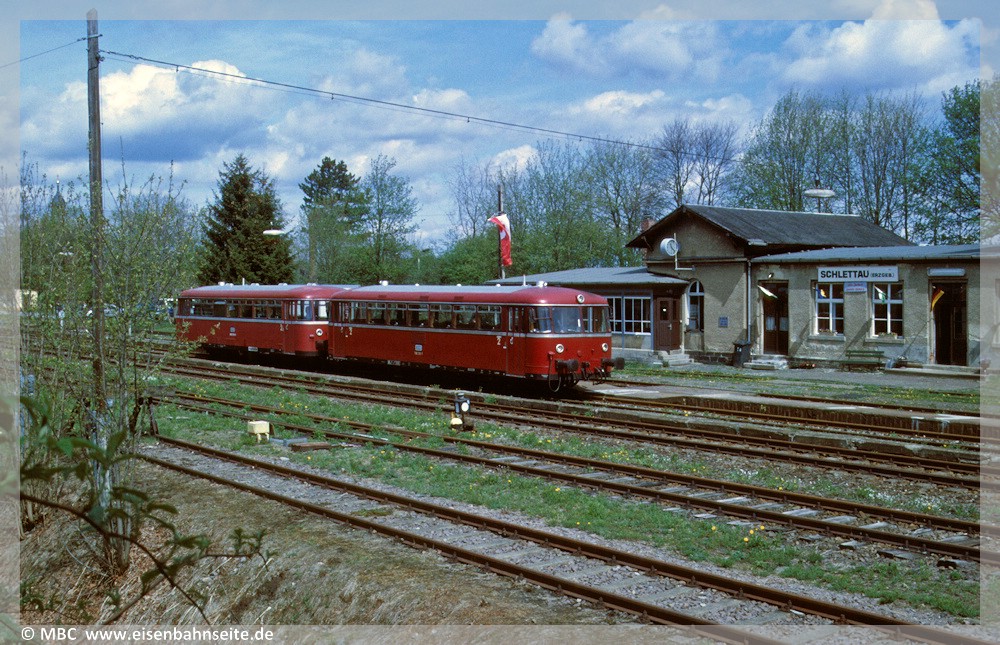 Wenige Wochen danach wurde diese Verbindung gesperrt und die ehemalige Personenzugstrecke zwischen Zeitz und Tröglitz reaktiviert. Durch die Fluten Mitte 2013 war auch diese Verbindung lange unpassierbar. Den Kohleverkehr gab es da aber schon nicht mehr. Auch die Zuggarnitur, nahezu frei von Schmierereien, ist heute leider undenkbar.