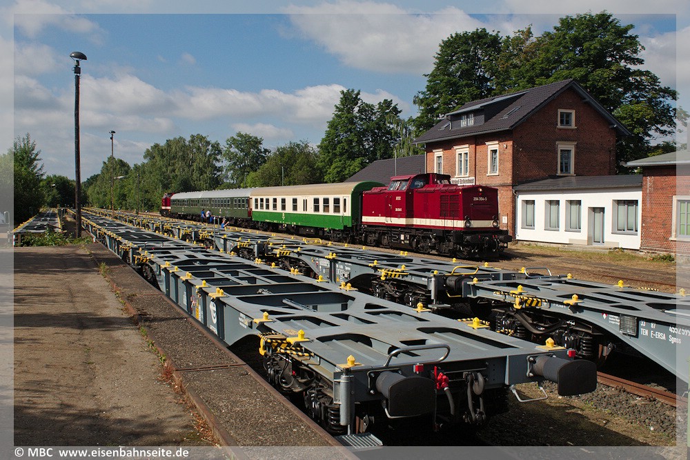 + 27./28.04.2005: Die größte mobile Wildwasserbahn wird zum letzten Mal per Bahn zum Annaberg-Buchholzer Volksfest „Kät“ gebracht . Am Abend des 27.04. erreichte 155 144 mit der langen Fuhre Chemnitz Hbf. Am nächsten Morgen wurde der Zug in zwei Teilen von 253 015 der EBB PRESS nach Annaberg-Buchholz unt Bf gebracht, wo letztmalig die Nebengleise genutzt werden konnten. Bei der Rückreise am 11.06. war das schon nicht mehr möglich und die Verladung erfolgte im Bf Schönfeld-Wiesa. +
