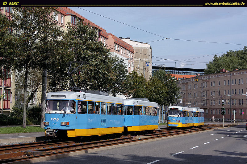 4a: Nur einer Sonderfahrt waren diese „Kurzzüge“ zu verdanken. T3D-M-512 und 505 haben jeweils einen Beiwagen (760 und 762) am Haken (04.09.2011). Auch dieser Gleisabschnitt wird nun im Zuge der Bauarbeiten zum „Rasengleis“ werden.