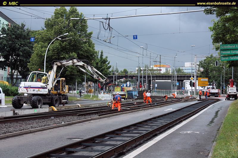 Hier nochmals der Blick auf das vorbereitete Interimsgleis. Die Straße ist allerdings noch nicht ausgefräst (14.07.2015).