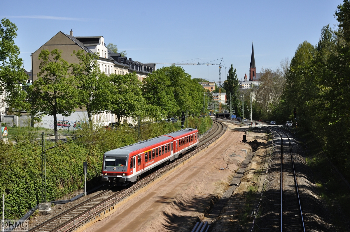 Am 07.05.2020 passiert 928 / 628 627 als Leerzug Halle-Ammendorf – Mühldorf (Oberbay) die Chemnitzer Bernhardstraße. Der Neubau der Brücke über die Stollberger Straße war am 21.05.2020 schon ziemlich weit fortgeschritten, als PRESS 140 007 und 140 042 mit Kesselzug von Weiden West nach Oldenburg (Oldb) Hbf die noch alten Brückenteile Neefestraße / Stollberger Straße überqueren.