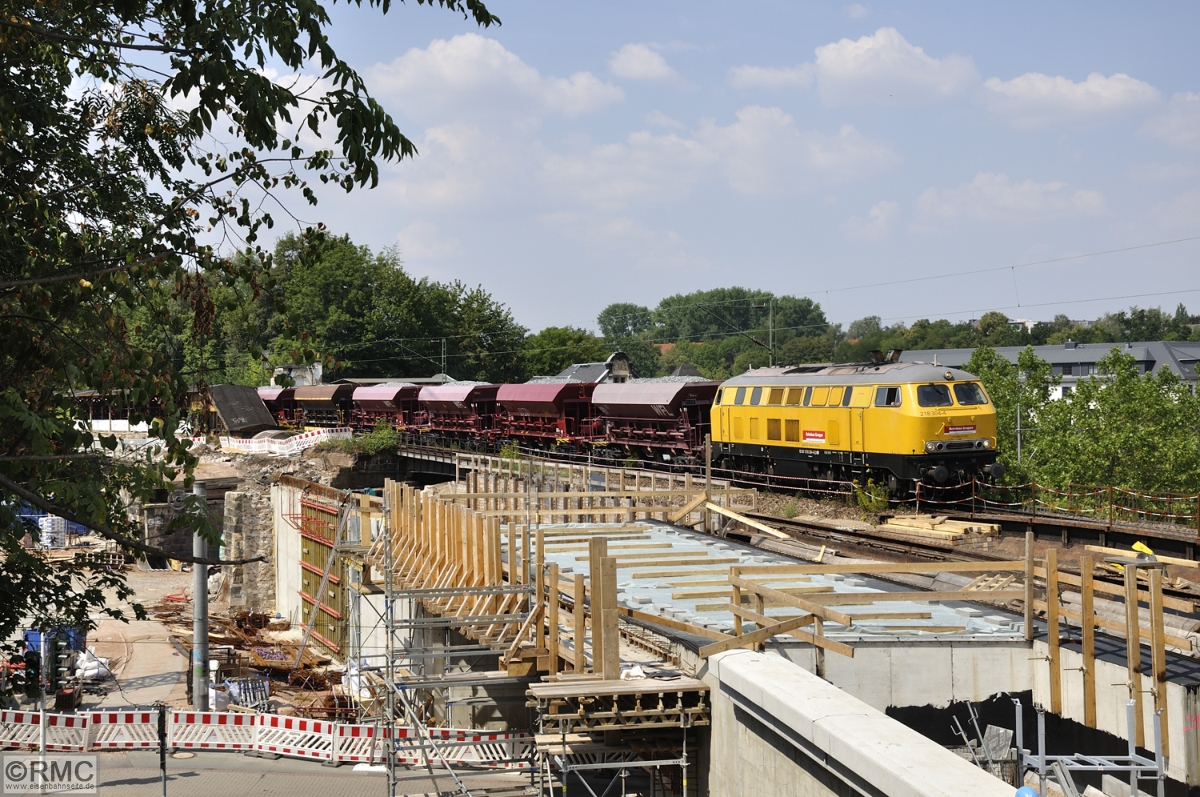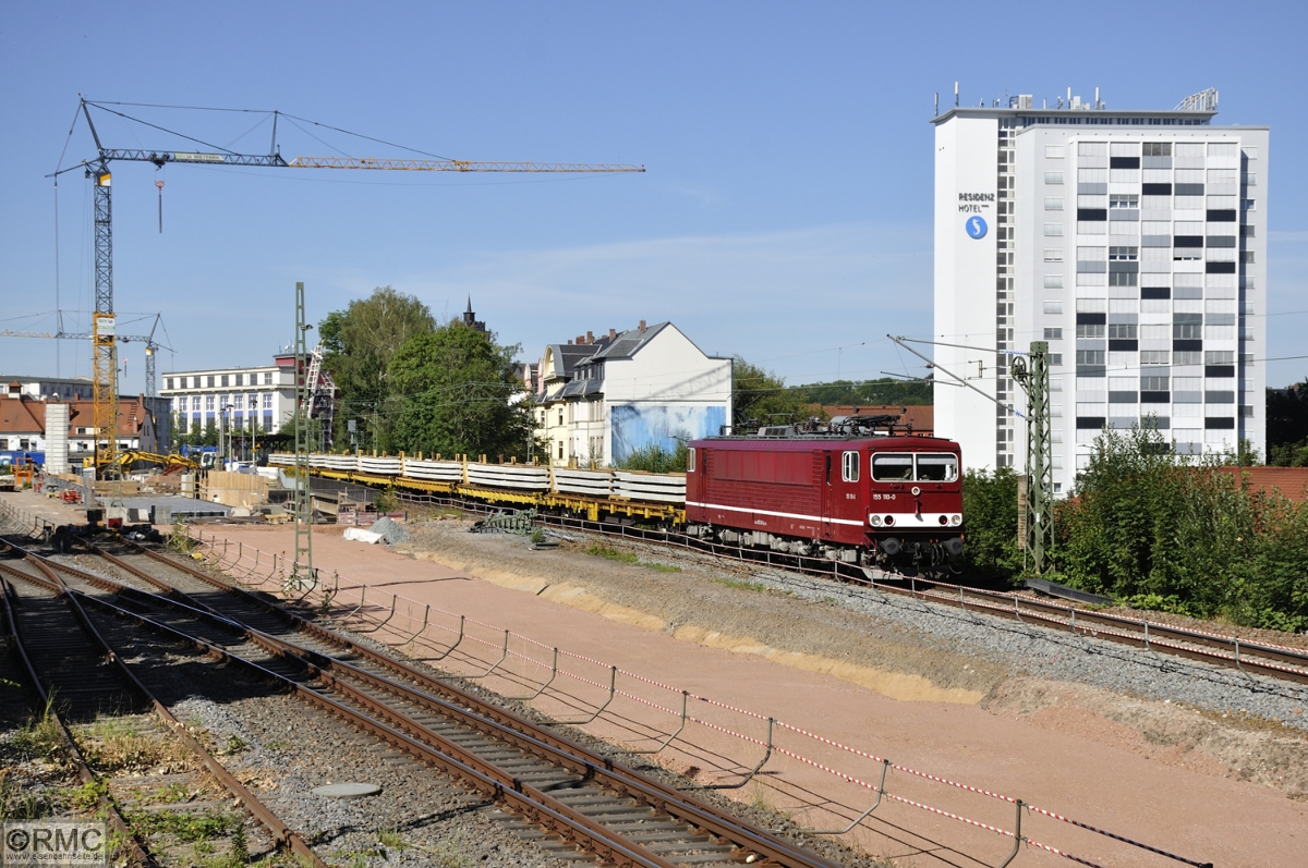 WFL 155 110 ist am 01.08.2020 mit einem Schwellenzug von Zwickau (Sachs) Hbf nach Chemnitz Hbf unterwegs. Die letzten Wagen befinden sich noch im Hp Chemnitz Süd. Zu erkennen sind auch die Bauarbeiten an der EÜ Bernsdorfer Straße.An der Neefestraße / Stollberger Straße finden im August Arbeiten an den neuen Stützwänden statt. 218 304 der DB Bahnbau Gruppe bringt am 09.08.2020 einen Schotterzug von Zwickau (Sachs) Hbf nach Chemnitz Hbf.
