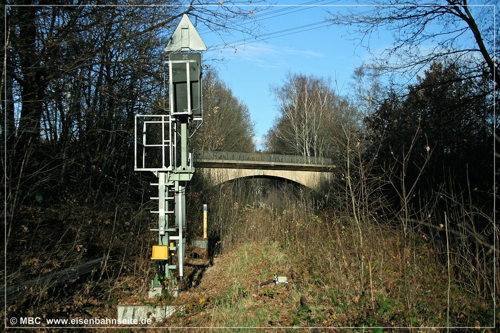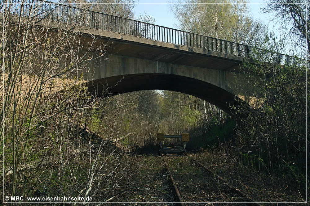Die Straße überquert auf einer Betonbogenbrücke das Streckengleis. Unmittelbar nördlich befand sich das Einfahrsignal des Bf Wüstenbrand.