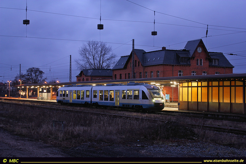 Etwas abseits der „populären“ Ersatzverkehre zwischen Dresden und Hof wurden auch auf der RB 45 zwischen Elsterwerda und Chemnitz zeitweise Ersatzfahrzeuge eingesetzt. Neben RS 1 der City-Bahn Chemnitz waren dies die LINT-Triebwagen 648 295 und 299. Am 27.12.2016 standen die Einsätze kurz vor dem Ende, als 648 295 Mittweida erreichte.