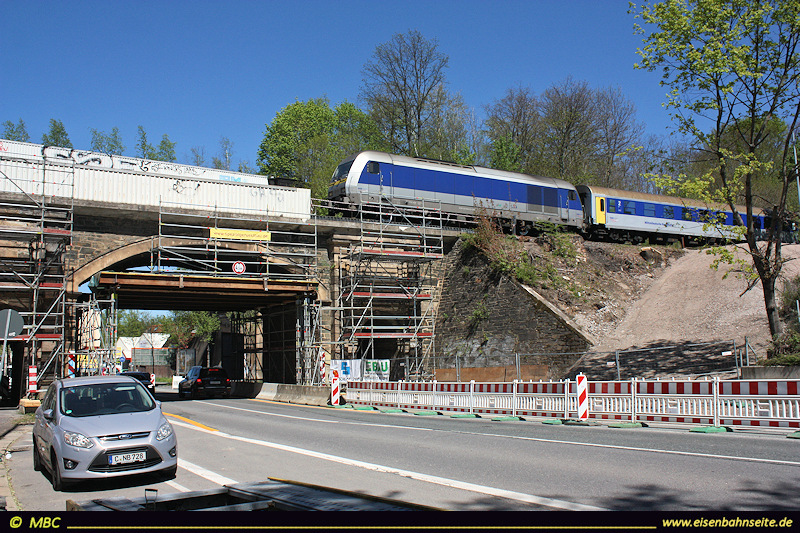 [16] In der Nacht vom 7. zum 8. November 2016 wurde die Überführung eines Schwertransportes nach Wittgensdorf ob Bf gleich für Messungen zur Befundung des Viadukts genutzt. Der Trafotransport, gezogen von 112 565 und 708, verbrachte zu diesem Zweck mehrere Morgenstunden auf der Brücke.