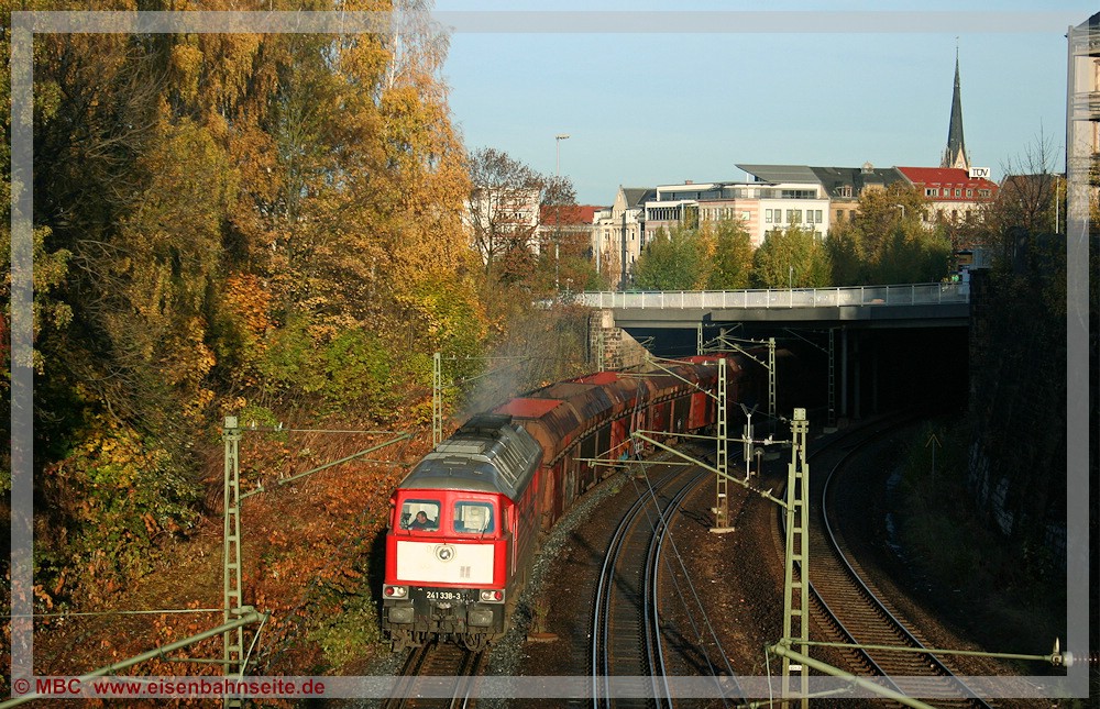 [59] An einem strahlenden Septembertag des Jahres 2005 rollte die Spreewitzkohle auf Gleis 5 des Chemnitzer Hbf ein. Meistens fuhr der Zug direkt nach Siegmar durch und der Lokwechsel erfolgte nach der Rückkehr von dort.