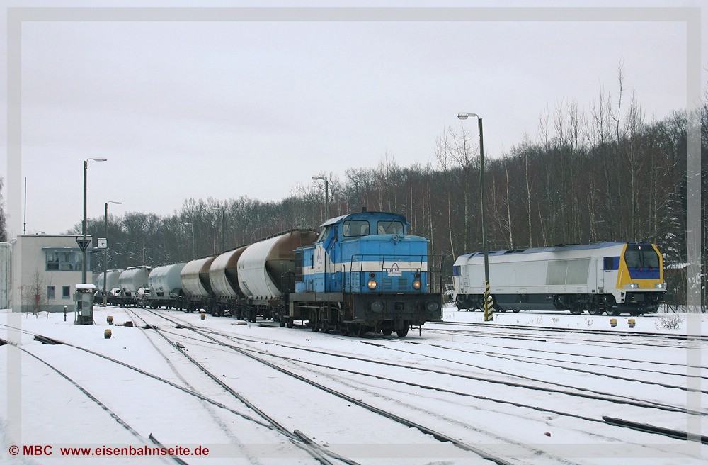 [119] Für den 27. Dezember 2009 ist der erste Einsatz einer Maxima 30 CC – die etwas schwächere Variante des Voith-Sechsachsers – nachgewiesen. Es handelte sich um 263 001, welche auch in den Folgejahren immer einmal wieder Küchwaldkalkdienst hatte. Am 26. August 2012 war mit 263 003, seinerzeit LEGIOS a.s. aus Prag zugehörig, eine weitere 263 am Zug, was aber eine Ausnahme blieb.