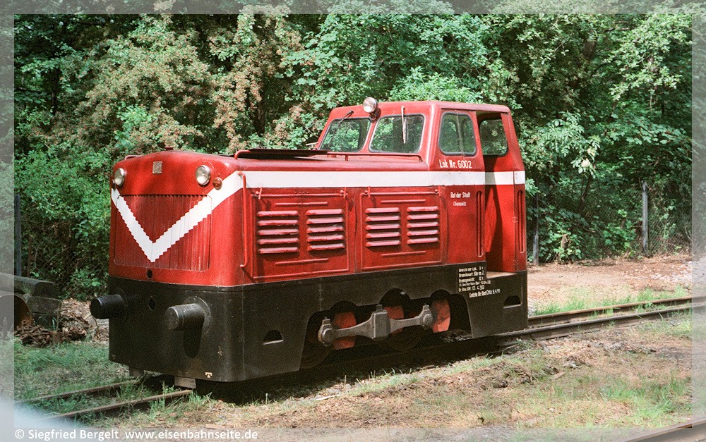 Rund vier Jahre musste Lok 1 allein den Verkehr im Küchwald bewältigen, ehe Verstärkung eintraf. Der VEB Lokomotivbau Karl Marx in Babelsberg (LKM) fertigte 1957 eine eigens für die Karl-Marx-Städter Pioniereisenbahn kreierte Ns 3p. Im Unterschied zur konventionellen Ns 3 erhielt die Lok eine ansehnliche Karosserie, die ihr ein unverwechselbares Äußeres verleiht. Bis zum Einsatzbeginn einer umgespurten V 10 C im Jahre 1983 bewältigte die 6002 die Hauptlast im Zugverkehr. Im Rahmen einer langwierigen Getriebereparatur im Bw Chemnitz, Betriebsteil Glösaer Straße 1991/92 erhielt die Lok auch auf der Vorbauseite eine Mittelpufferkupplung. Diese wird beispielsweise bei Paraden benötigt, wenn Lok 6001 und ein Reisezugwagen geschoben werden. Bei einer Hauptuntersuchung im Winter 1995/96 erhielt sie keinen neuen Motor, jedoch eine Leistungssteigerung von 60 auf 90 PS. 1996 sah man die Lok folgerichtig in verkehrsstarken Zeiten [erstmals?*] vor einem Fünf-Wagen-Zug. Auch im Jahr 2025 ist die Kleine betriebsfähig und muss hin und wieder im Reisezugdienst aushelfen. Zu Höchstleistungen will man die alte Dame aber nicht mehr herausfordern.