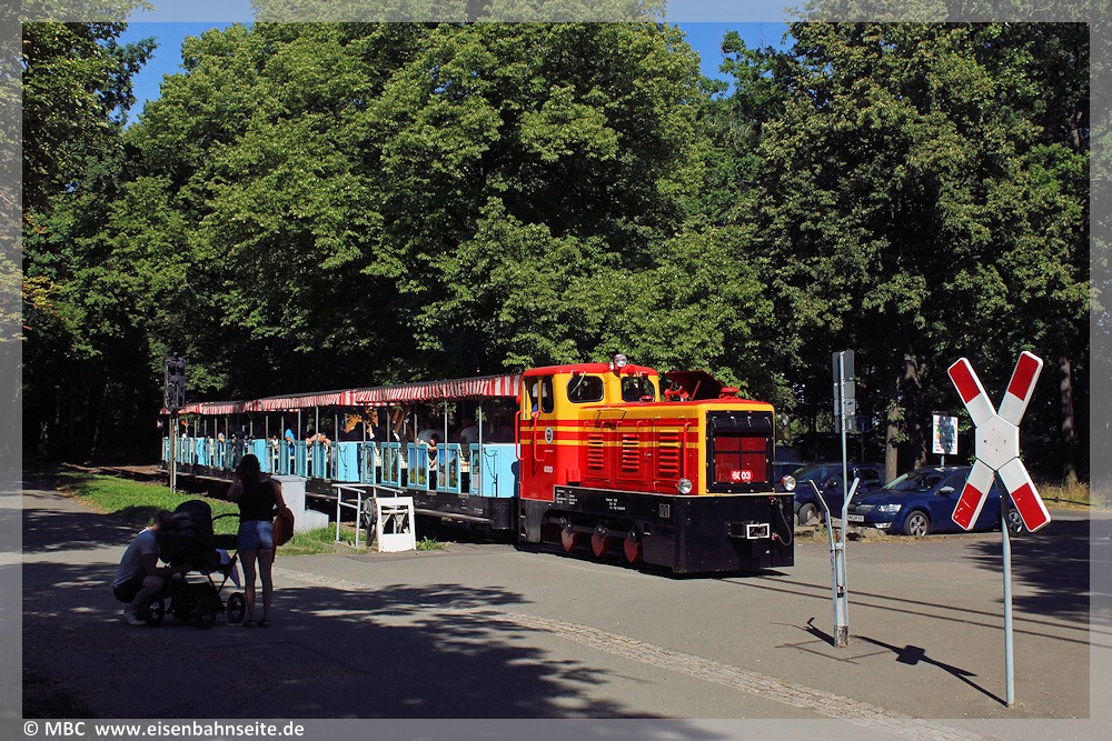 zum Personenzug in Richtung Tennisplätze über Leipziger Straße bitte einsteigen, die Sicherheitsketten schließen und Vorsicht bei der Ausfahrt des Zuges! Wir wünschen unseren Reisenden sowie dem Lok- und Zugpersonal eine angenehme Fahrt durch den Küchwald.