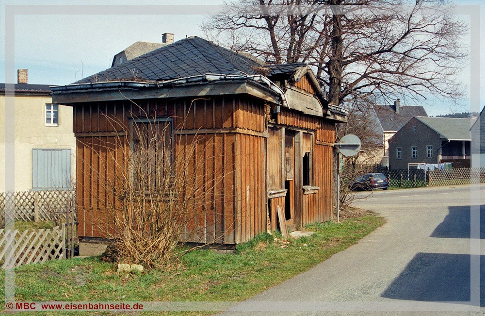 Nach der Verlegung des Haltepunktes auf die andere Seite des Bahnübergangs war die Station zwischen 1925 und 1928 geschlossen. Als Wartehäuschen diente viele Jahre lang der mit einem Spitzdach versehene Kasten eines vormals zweiachsigen gedeckten Schmalspurgüterwagens, welcher bis Mitte der 1990er-Jahre vorhanden war.