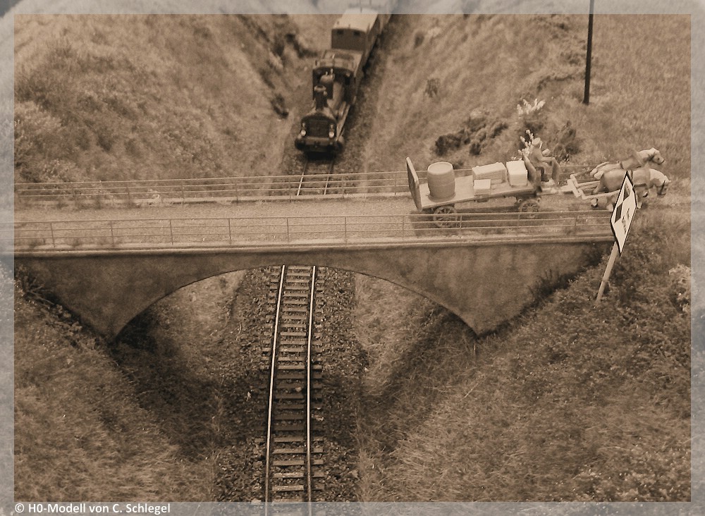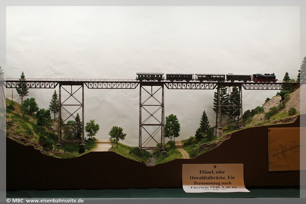 [30] Die Nachbildung in 1:87 zeigt die Schönheit dieses Bauwerkes. Das mittlere Stück wurde 1972 gesprengt. Der Abriss der äußeren Pfeiler vernichtete 1977 den Rest der Brücke.