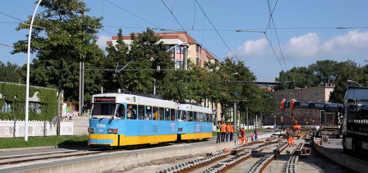 Die Straßenbahn fährt auf der Straße? Klar, wo sonst! Aber in Chemnitz ist das garnicht so selbstverständlich. Schließlich ist hier ein Großteil der Schienen auf eigenem Gleiskörper, zwischen den Autofahrbahnen, angelegt. So auch auf bzw. zwischen der Annaberger Straße. Die...