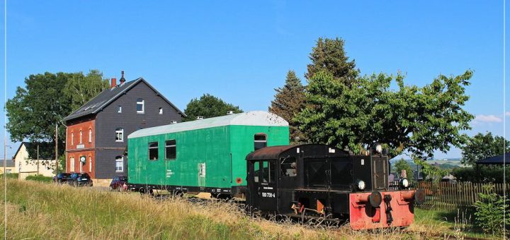 Streckenbeschreibung (V) Chemnitz, OT Grüna (II) Dieser Streckenabschnitt zählte zu den landschaftlich reizvollsten. Linkerseits weitet sich das Blickfeld kurz nach dem oberen Bahnhof über die Ortschaft Grüna in das Westerzgebirge. In bewegten Bildern hat Daniel Unger alias „Russpeter“ diese Szene...