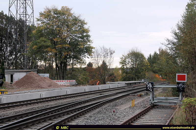 Selbe Stelle im Oktober 2017: Das Stellwerk wurde bereits 2005 abgerissen. Die neuen Bahnsteige sind noch in Arbeit.